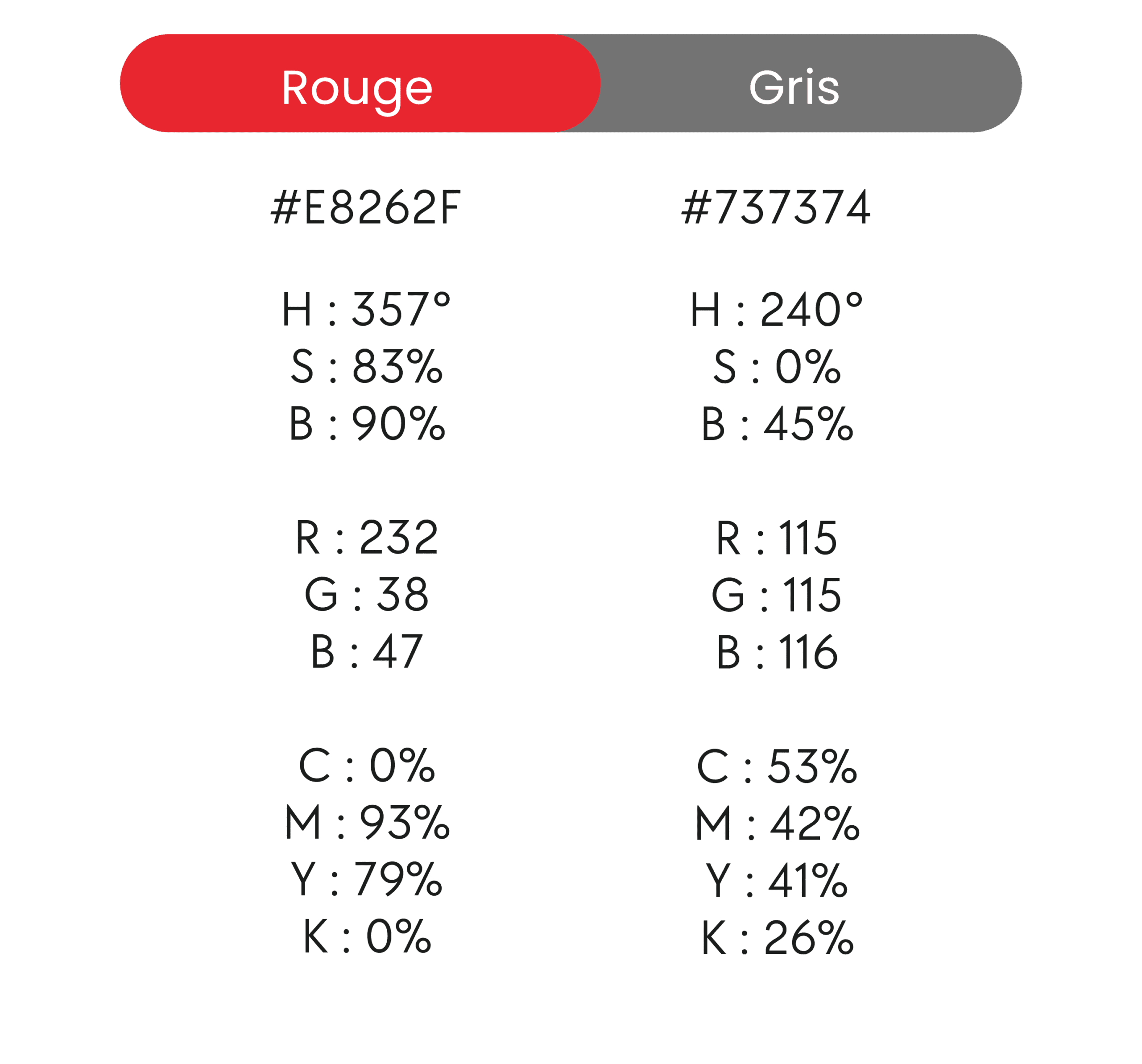 Le gris, plus neutre et structurant, apporte équilibre, professionnalisme et crédibilité à l’ensemble. Cette dualité crée un contraste puissant entre dynamisme et rigueur, permettant à la marque d’affirmer une identité moderne, impactante et parfaitement adaptée à un environnement professionnel exigeant.