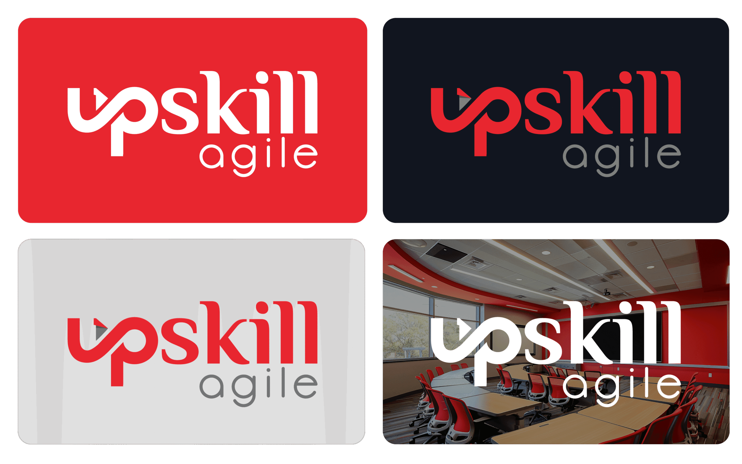 L’identité visuelle d’Upskill Agile a été pensée pour s’adapter à un large éventail de contextes de communication. Plusieurs déclinaisons ont été développées pour répondre à différents besoins :