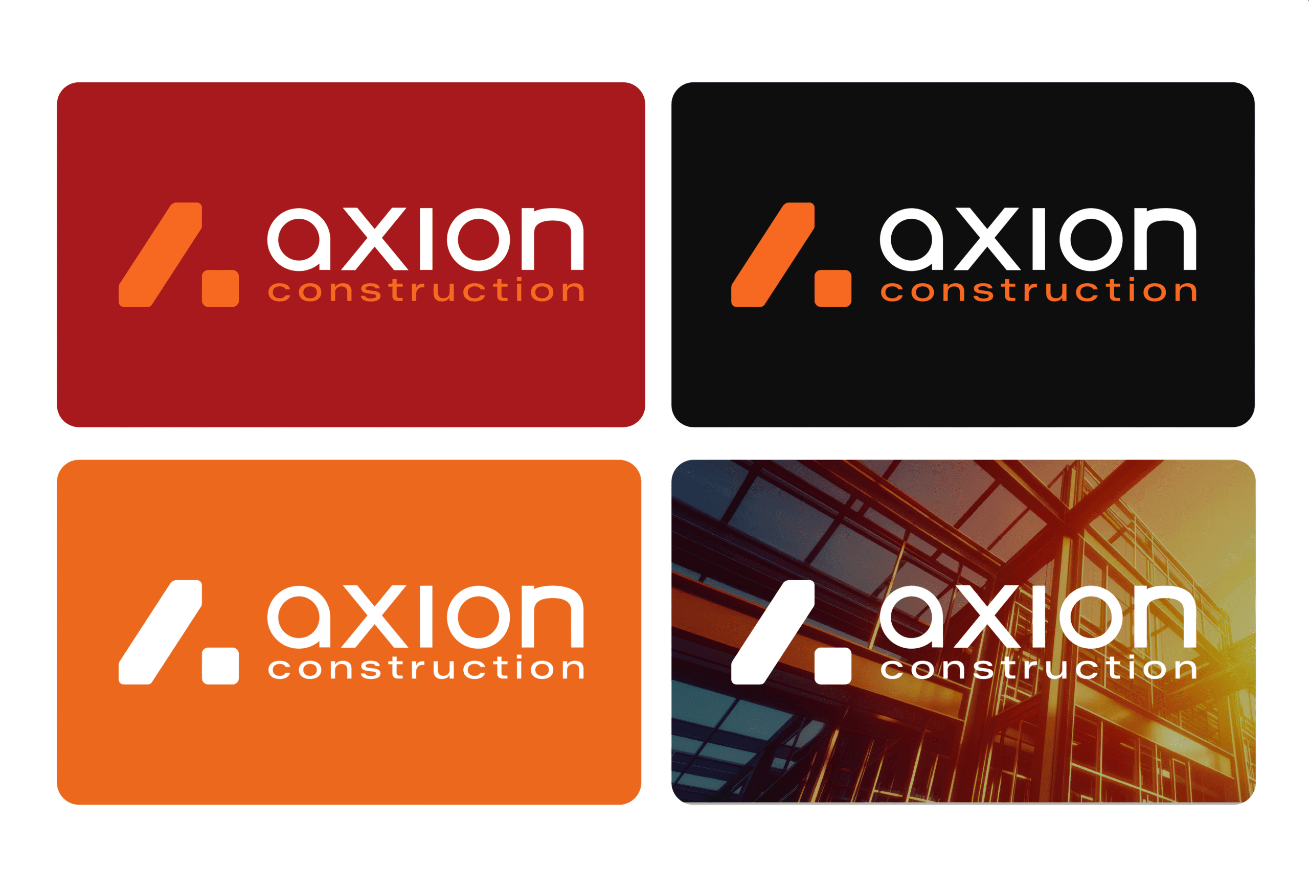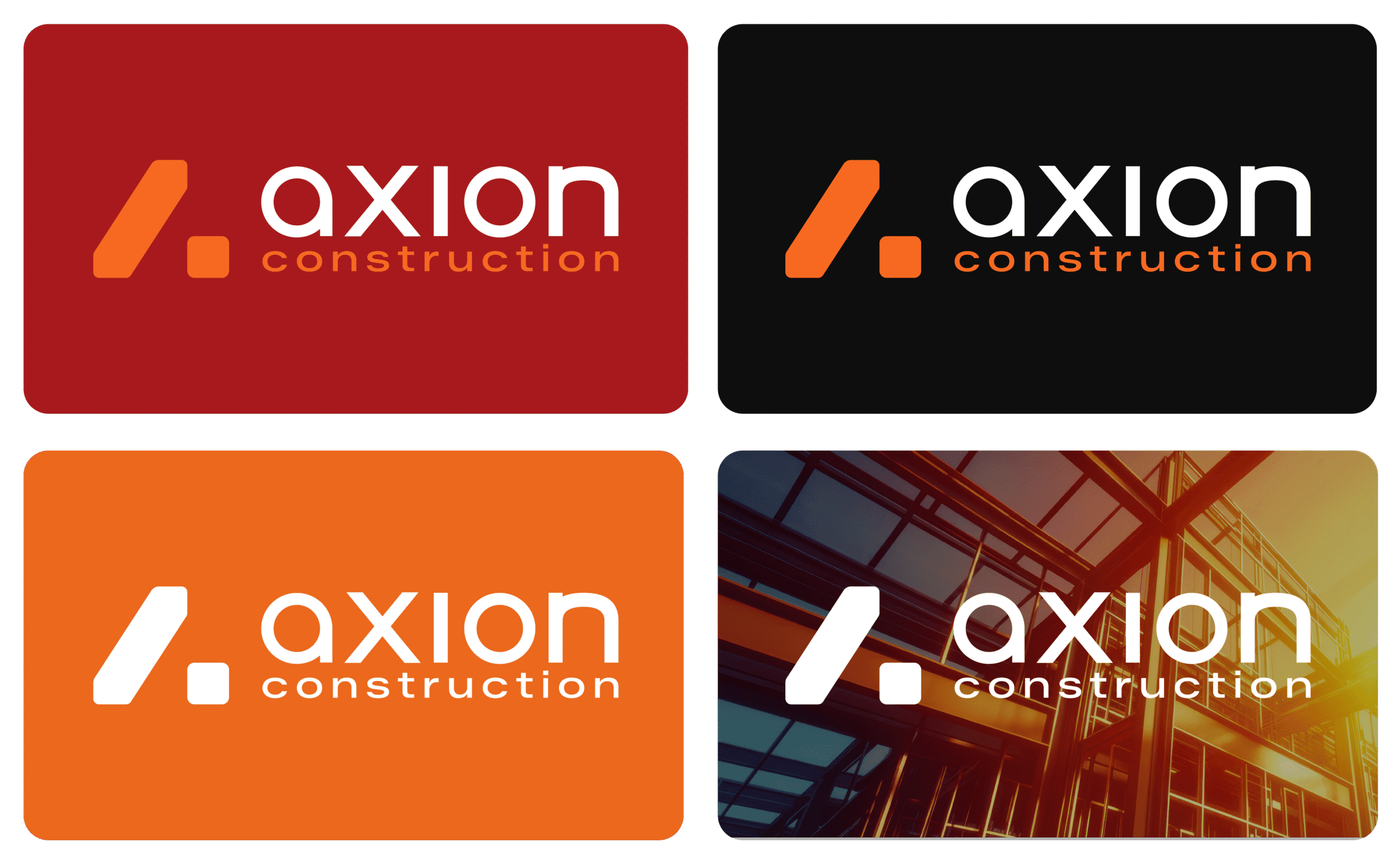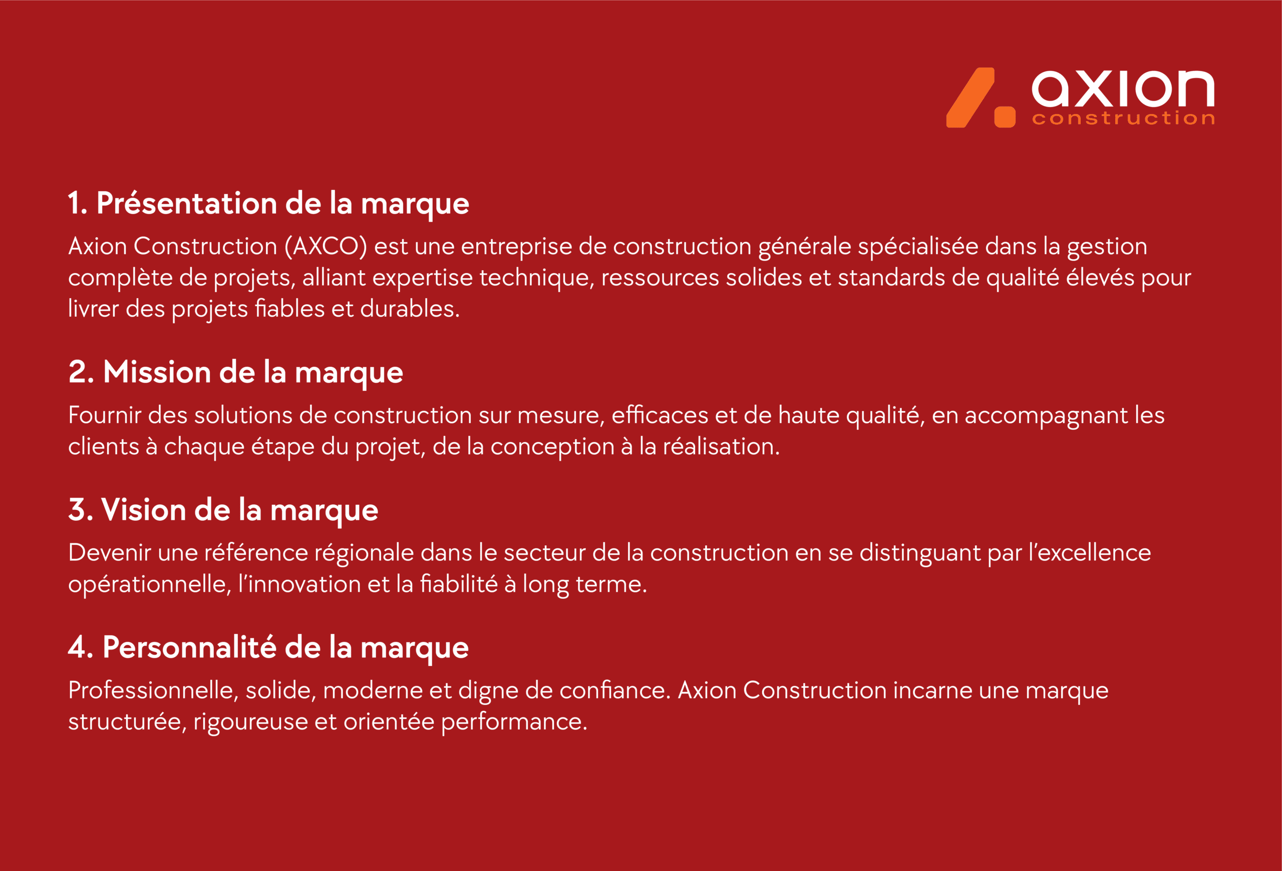 Le branding d’Axion Construction traduit une marque solide, structurée et orientée performance.