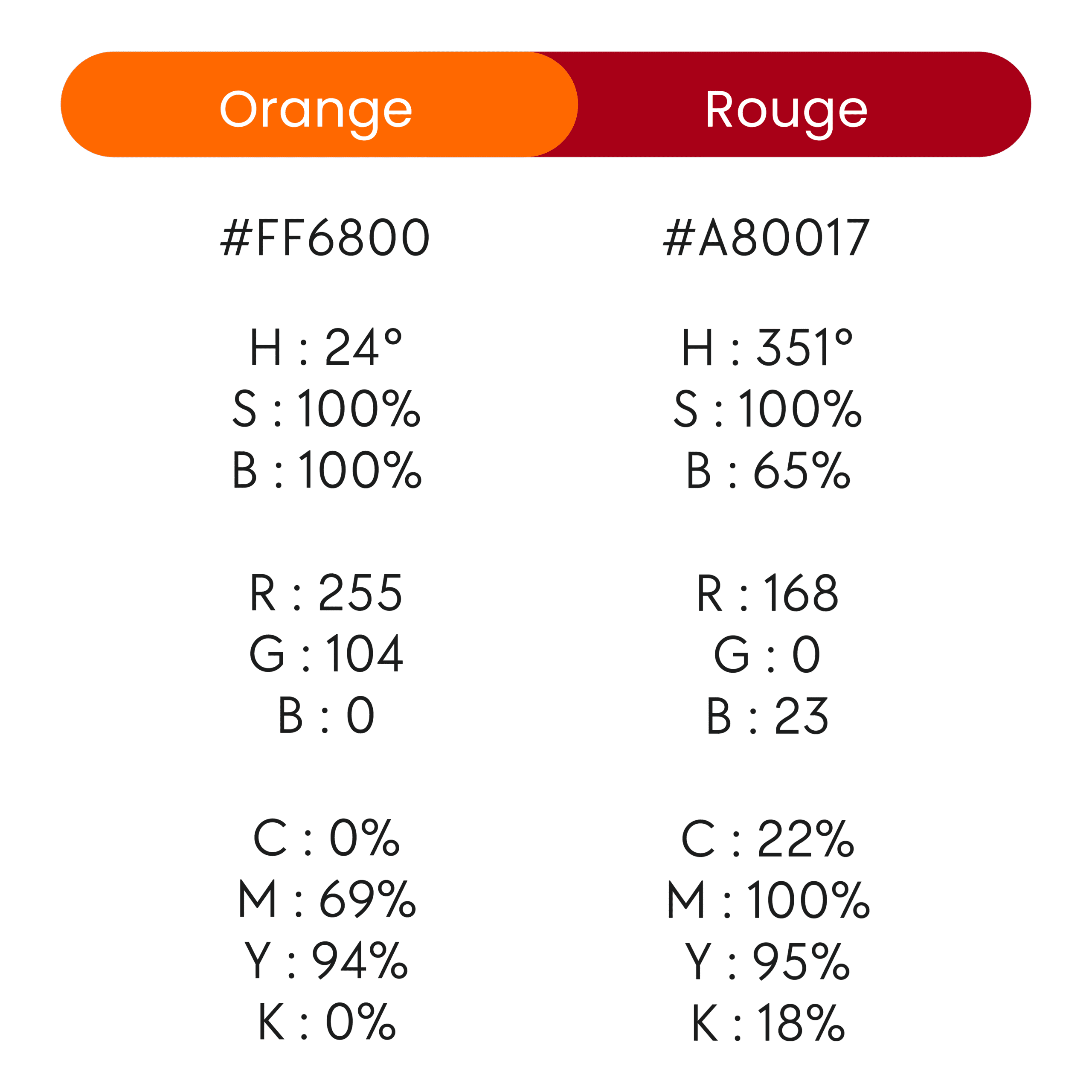 • Rouge : puissance, engagement, rigueur et confiance.