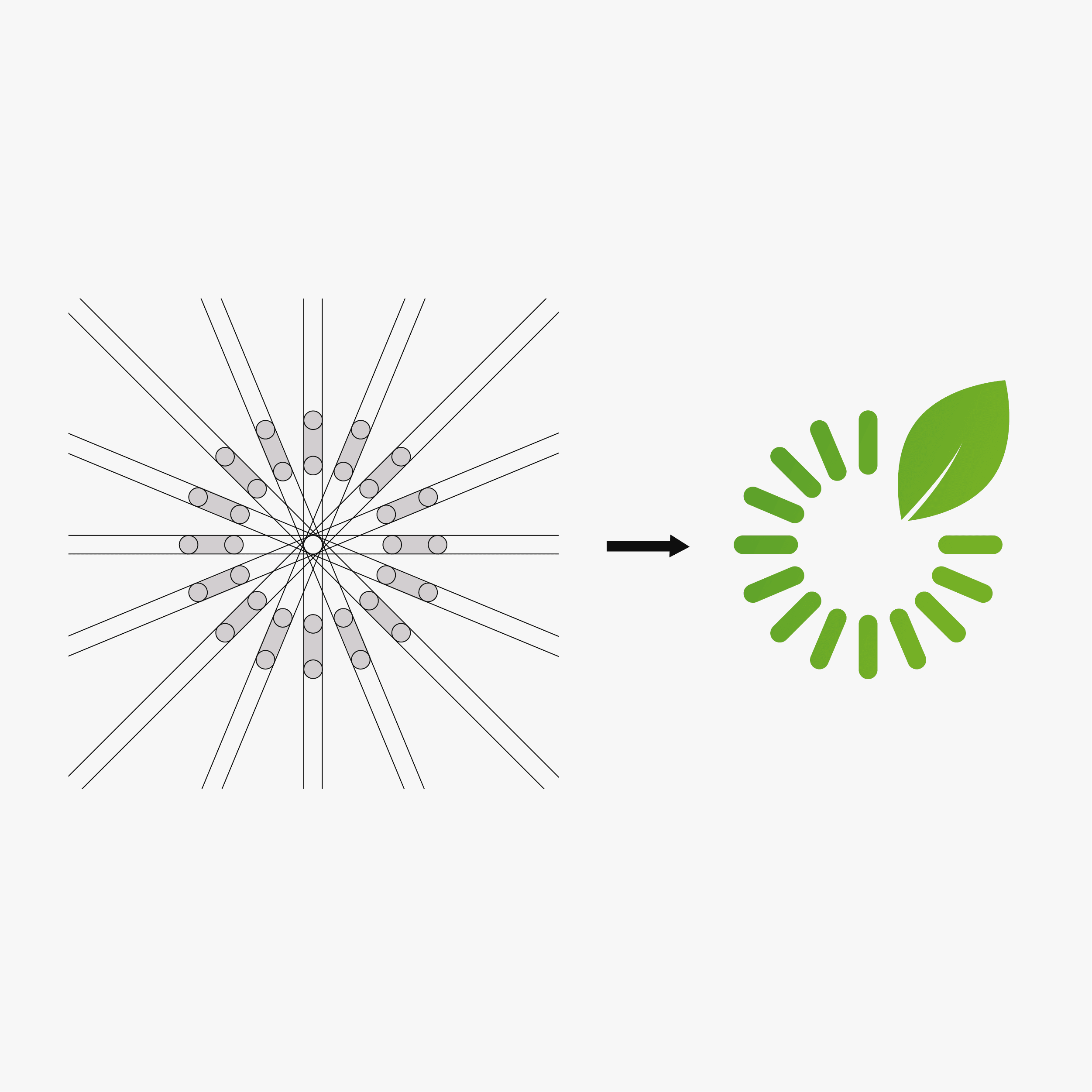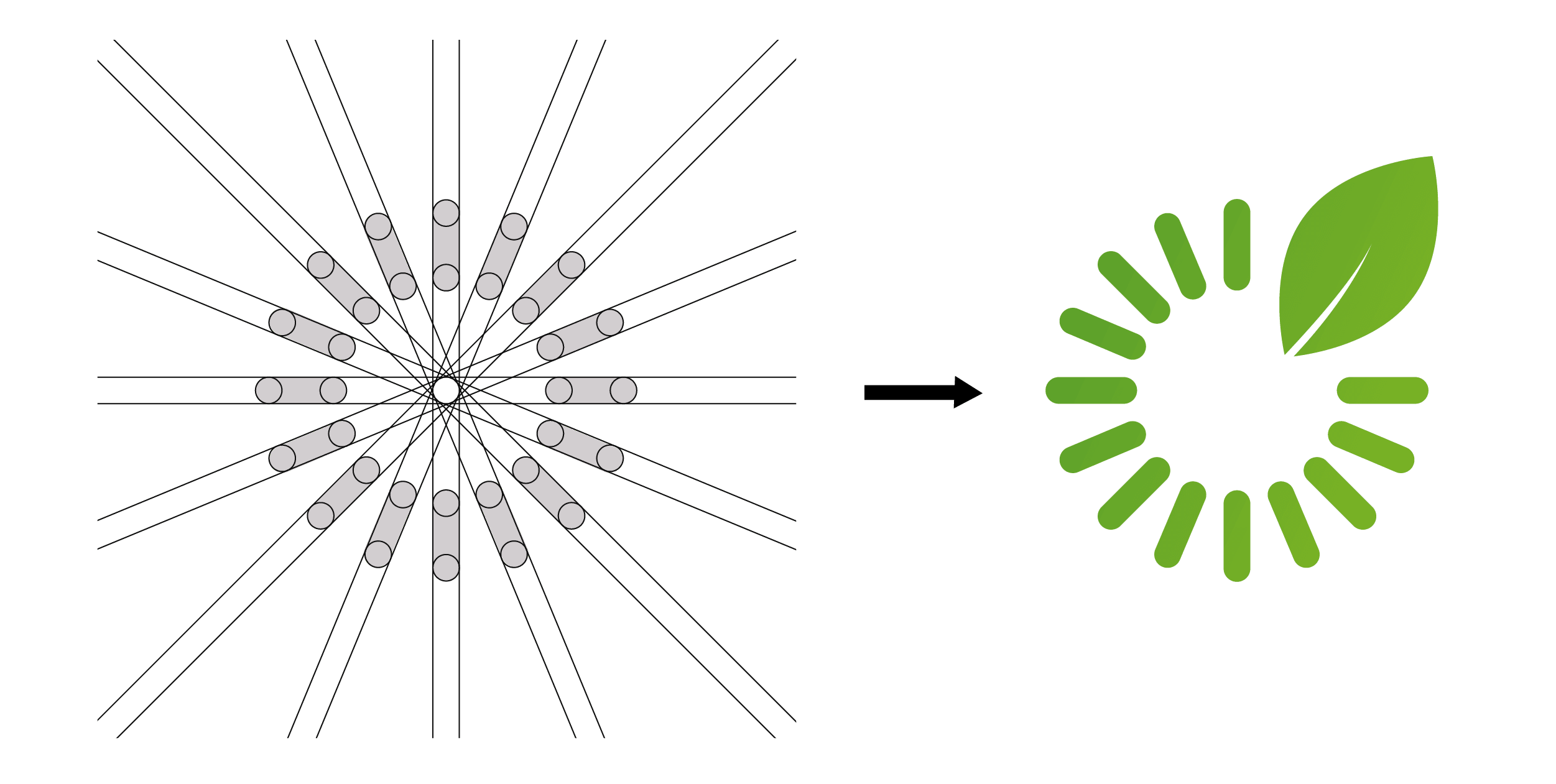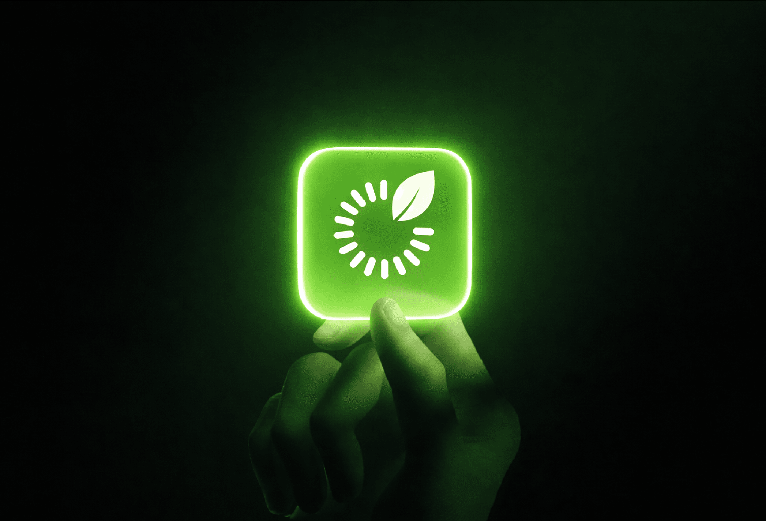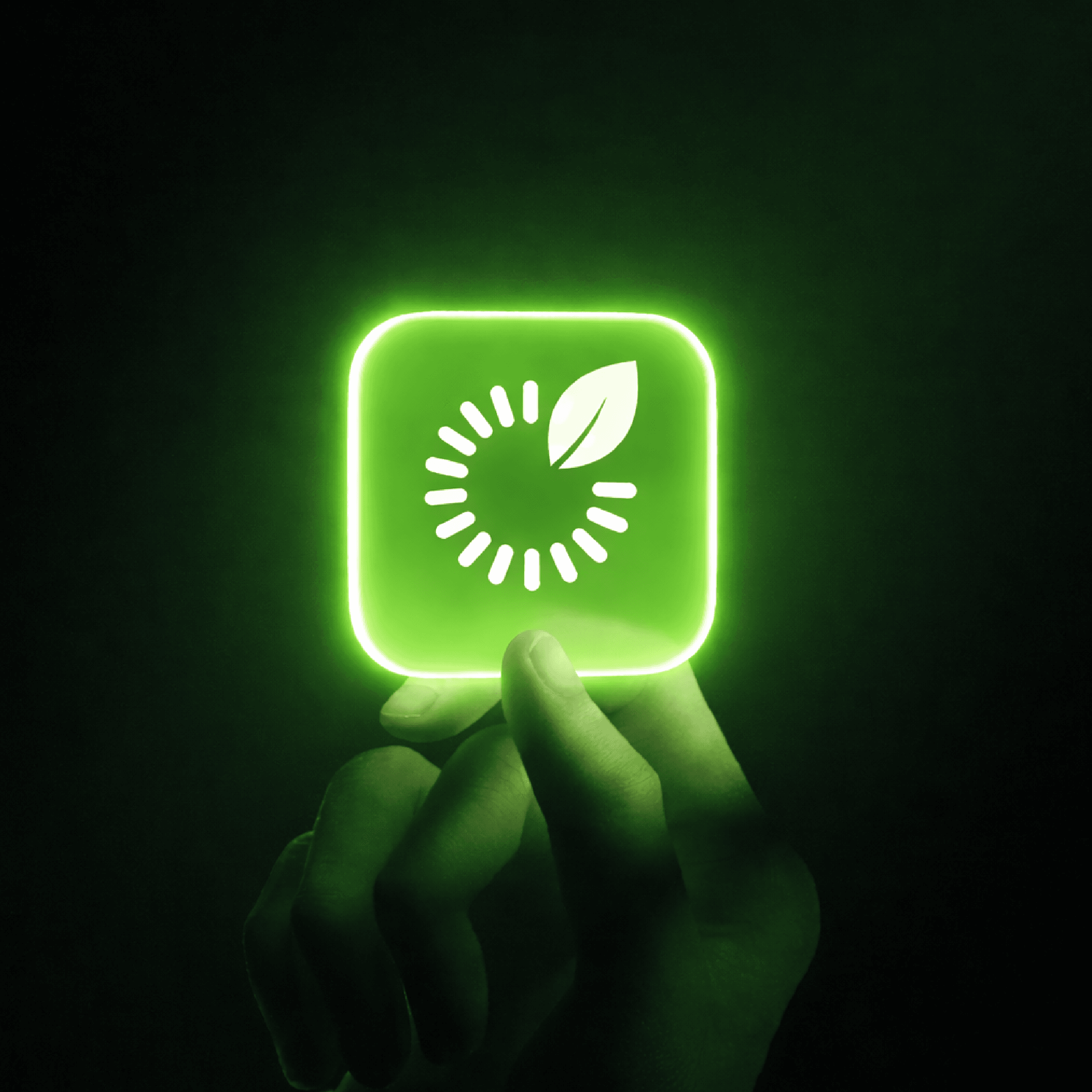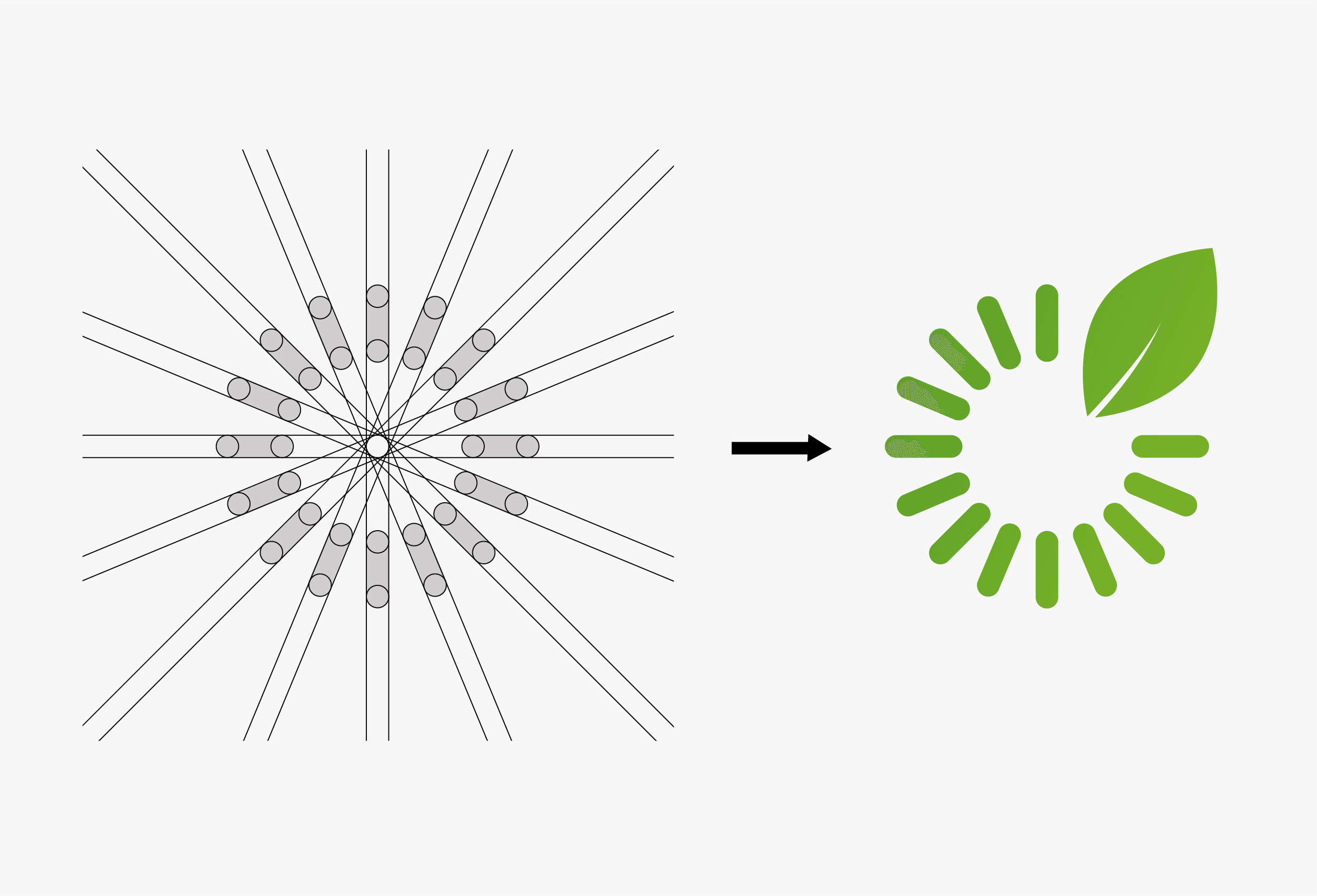 Les segments disposés en cercle évoquent le mouvement continu, l’optimisation énergétique et la performance, tandis que la feuille intégrée traduit l’engagement écologique de la marque.